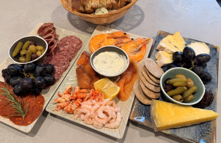 The Charcuterie plate includes a selection of award-winning, charcuterie from the fabulous Norfolk-based, Marsh Pig and the Cheese Plate includes three carefully selected and matured British cheeses from Rennet & Rind, Cambridge Cheesemongers. We have also recently introduced a brand-new Seafood Plate made with delicious, fresh seafood provided by Saffron Fish Co which includes a selection of cured and cooked seafood served with a tartare sauce. All of our plates are served with Mini Miss Bread Sourdough, and other seasonal accompaniments. It is essential to pre-book Plates to ensure availability.
